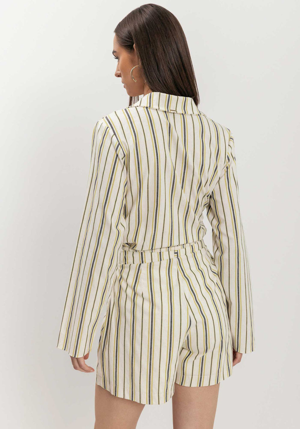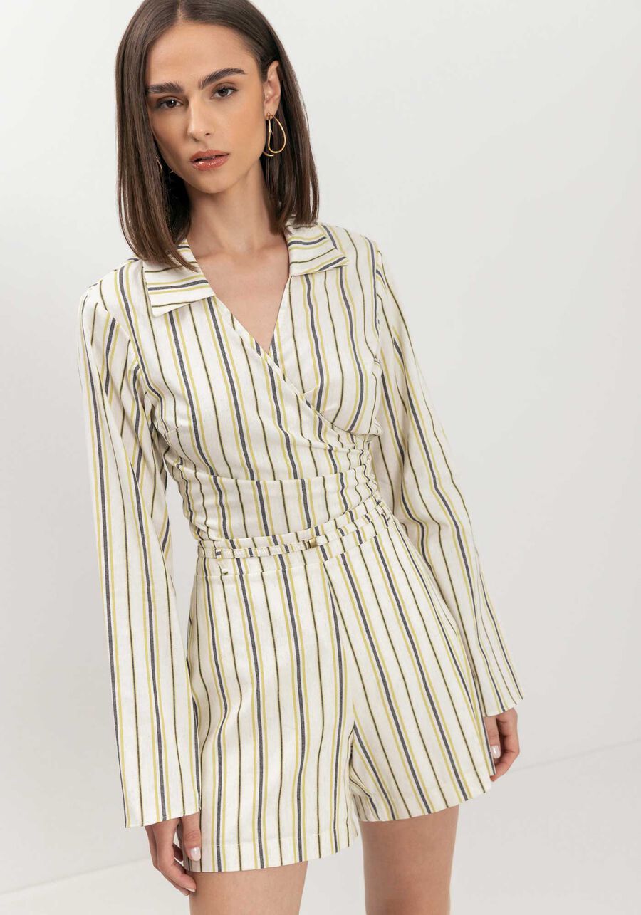 Com a leveza única do linho e o charme das listras atemporais, este shorts é uma peça essencial para compor looks versáteis. O cinto delicado destaca a cintura, adicionando estilo e personalidade ao visual. Feito em tecido com linho leve, padronagem listrada construída em tear, possui forro, cintura alta, fechamento por zíper e acompanha cinto delicado. COMPOSIÇÃO: CORPO 52%ALGODÃO 39%VISCOSE 9%LINHO FORRO 100% VISCOSE